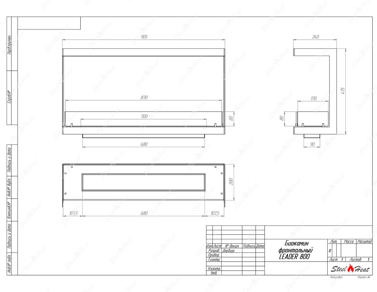 Встраиваемый Биокамин фронтальный SteelHeat Leader 800 предназначен для встраивания в глухие ниши из гипсокартона, кирпича, пеноблоков, бетона.