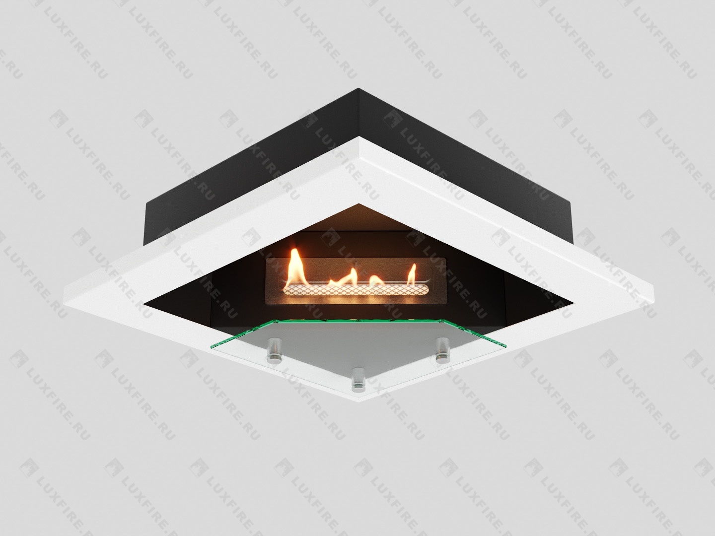 Представляет собой цельную металлическую конструкцию класса XS, создающую полузакрытое безопасное пространство для огня. Универсально подходит для встройки в нишу или подвеса на стену.